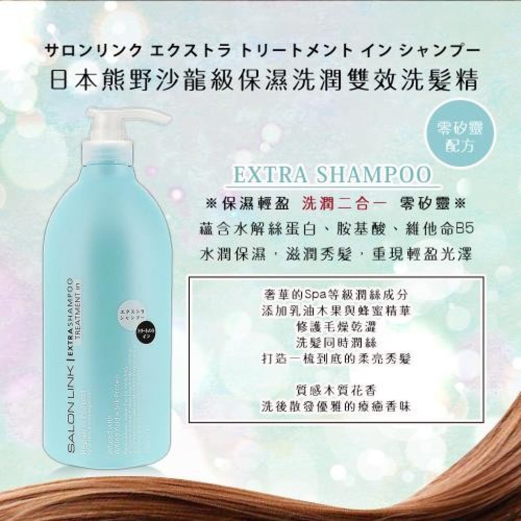 主頁 KUMANO 熊野油脂SALON LINK EXTRA沙龍級別二合一無矽洗髮乳1000ml (淺藍色)
