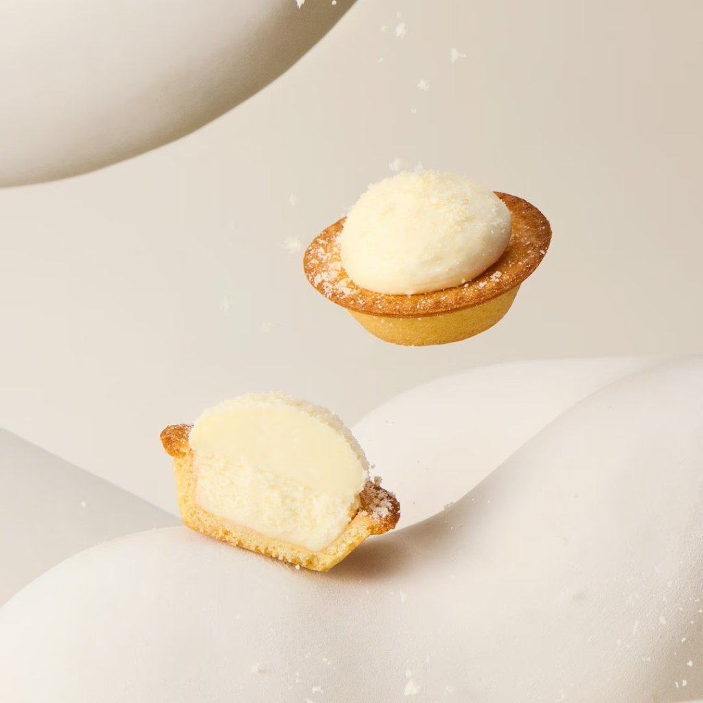 猶如雪景水晶球般圓潤可愛的生芝士慕絲,配上輕盈烘焙而成的芝士慕絲,兩層口感相互交織,打造出層次豐富的芝士撻。