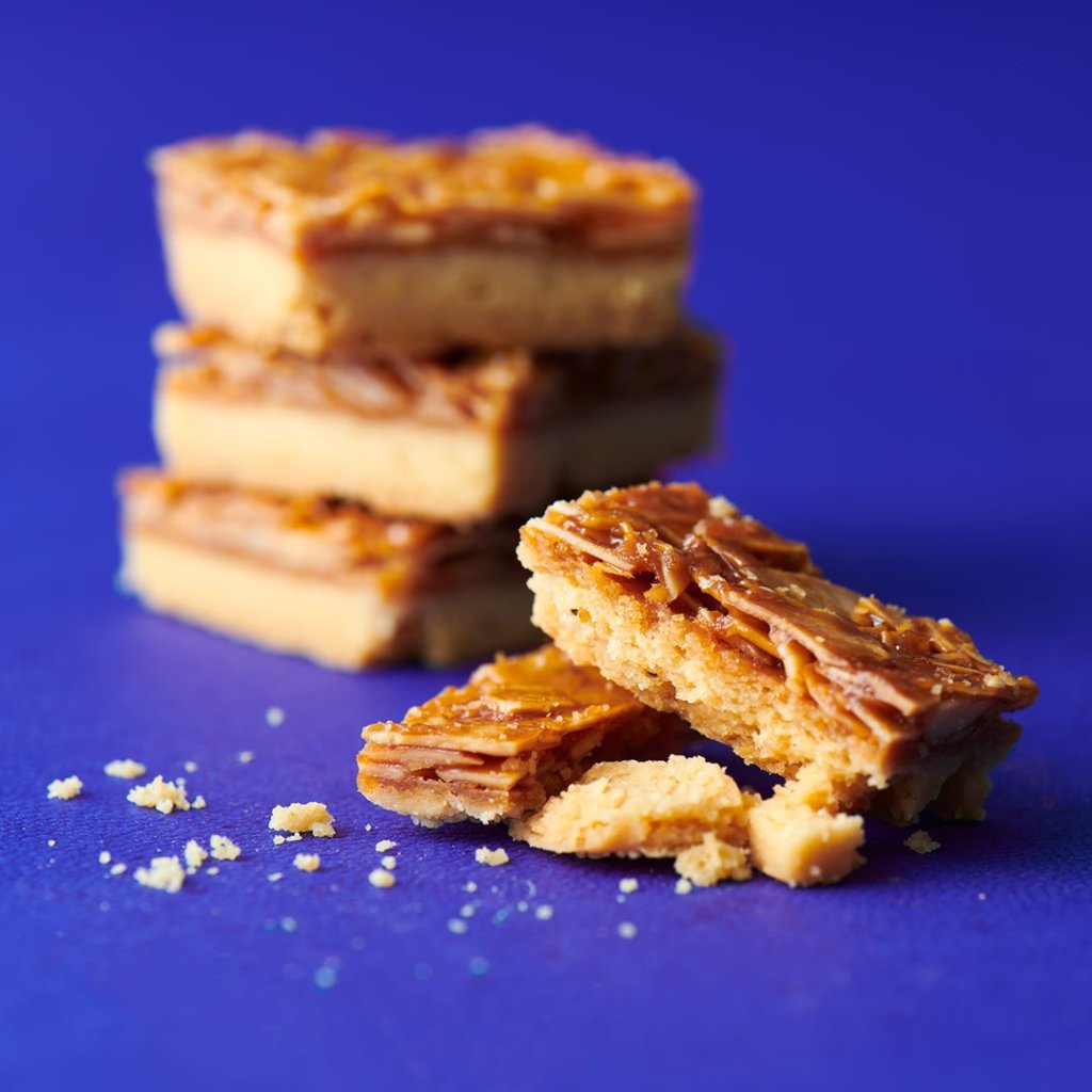 以北海道產牛油製成的香脆曲奇底,鋪上混合杏仁的焦糖。焦糖中加入柑橘作點綴,提升清新層次,襯托杏仁與焦糖的醇香與甘美。