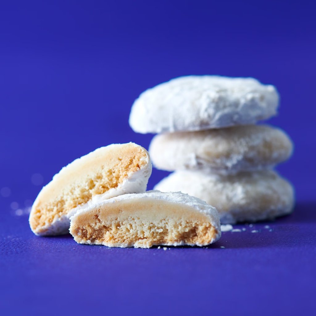 北海道產小麥粉與牛油混合大量杏仁粉,搓製成如雪球般的球形曲奇。入口即化、鬆化綿柔,杏仁香氣隨之在口中縈繞。