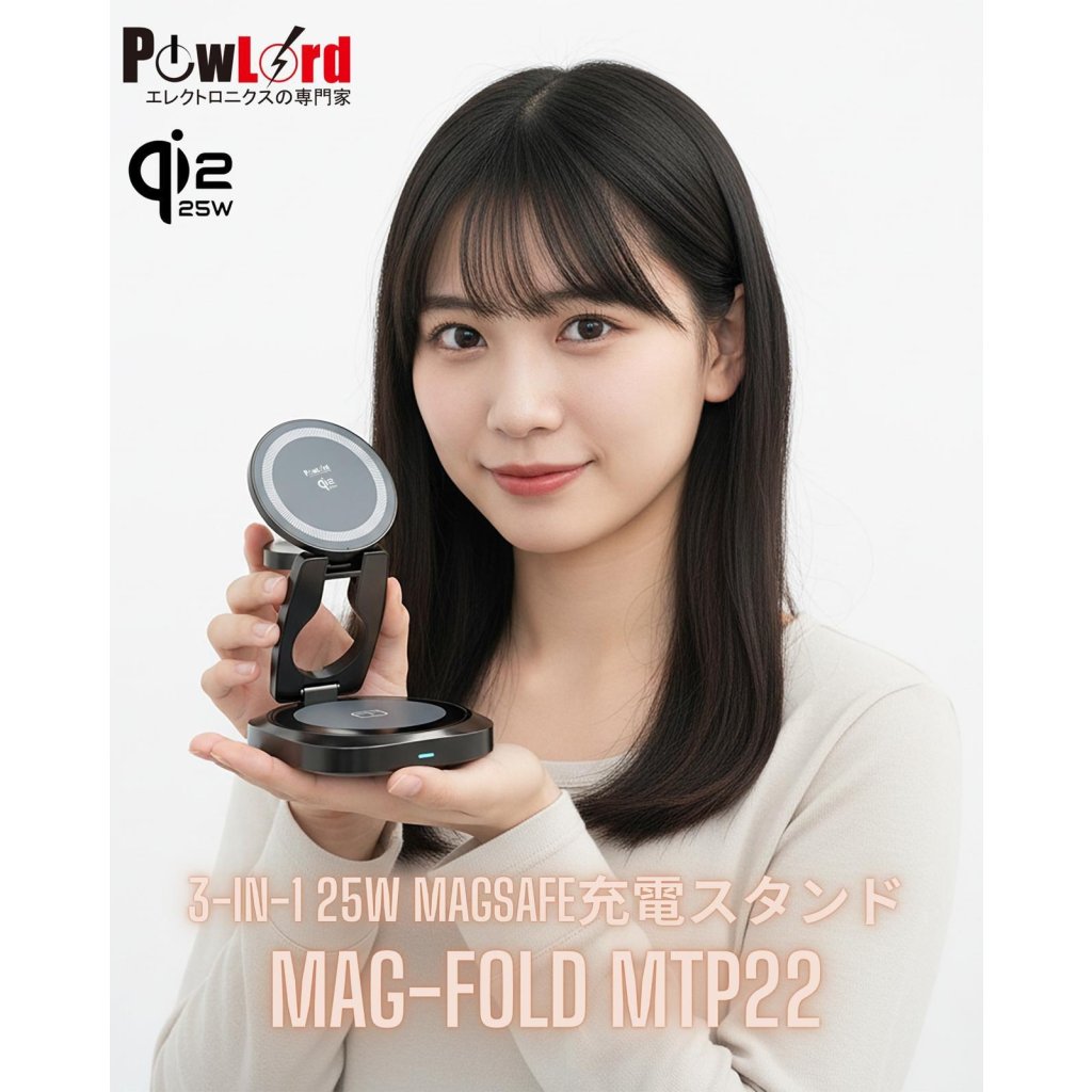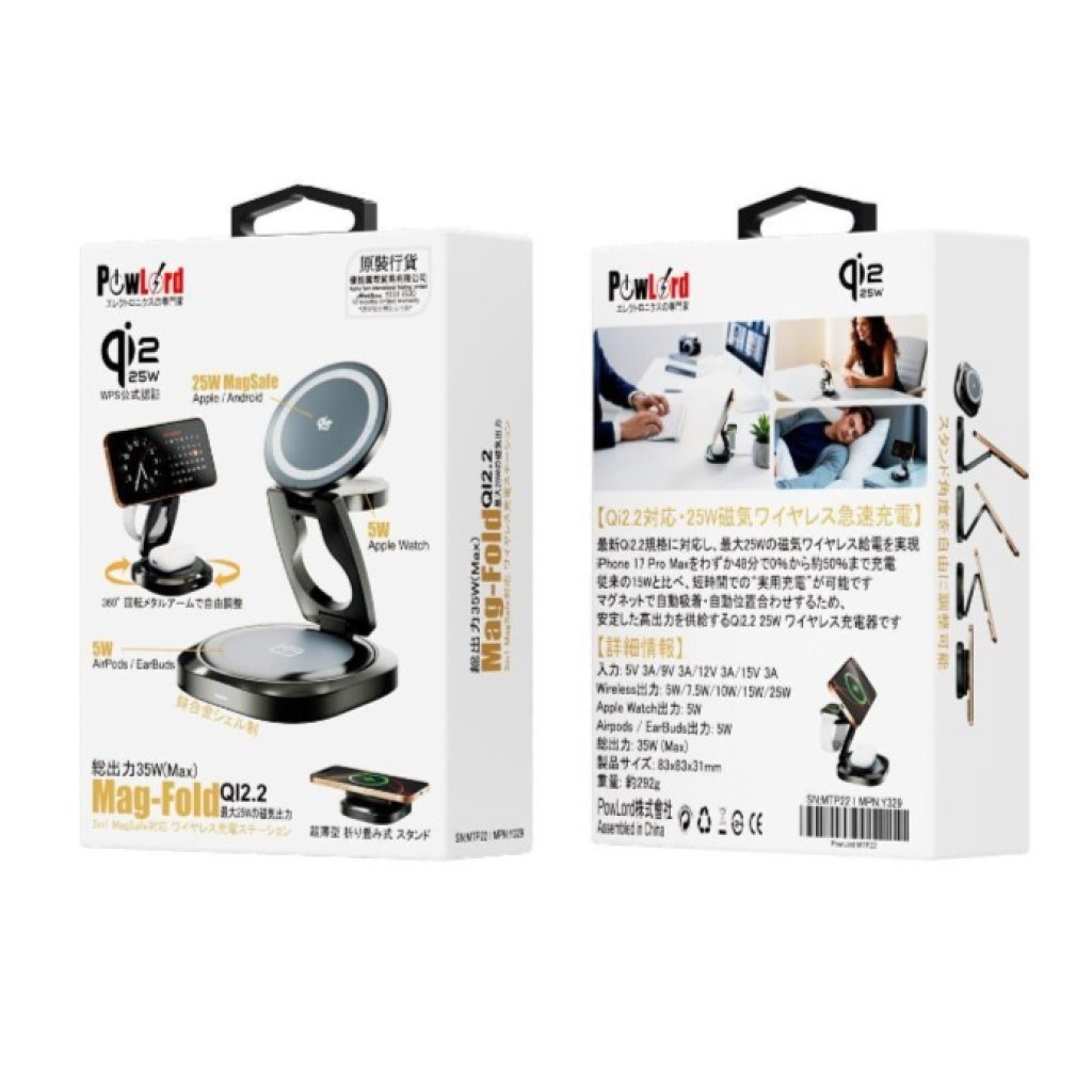 主頁 日本PowLord Mag-Fold Qi2.2 25W 3-in-1 鋅合金無線充電座