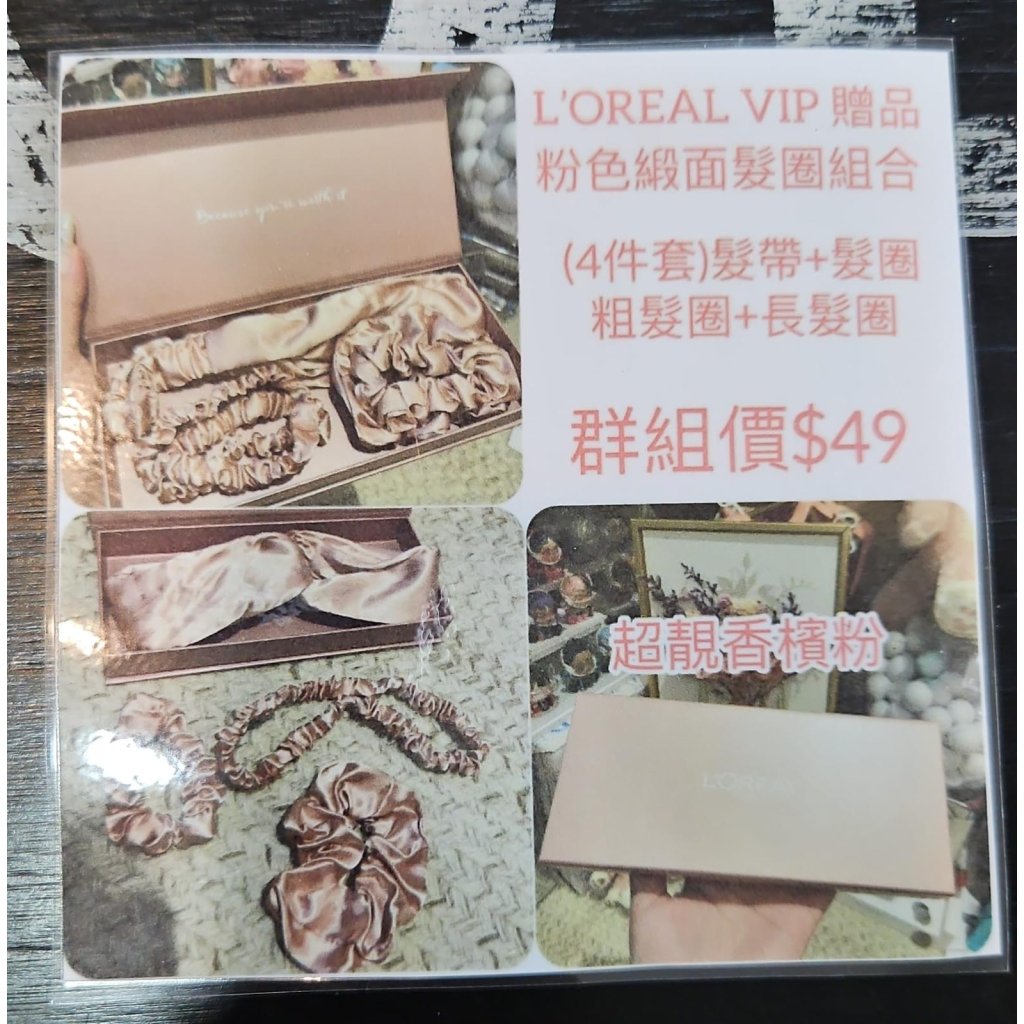 LOREAL 粉色緞面髮圈組合 (4件套)髮帶+髮圈+粗髮圈+長髮圈