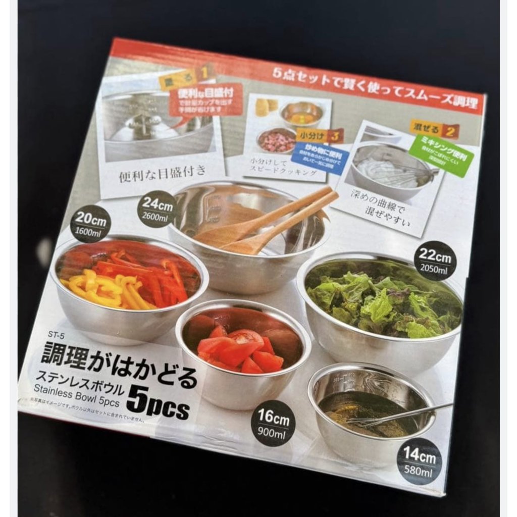 日本Kakuse 不鏽鋼有刻度料理碗5件套裝